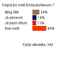 Svo virðist sem við Íslendingar höfum lítin áhuga á Evrópu körfuboltanum ef marka má könnun okkar hér á Karfan.is 48% þeirra sem tóku þátt fylgjast ekki neitt með Evrópunni.