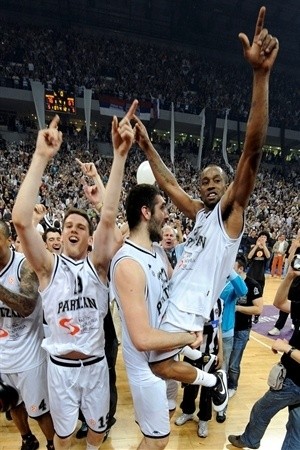 Mynd: Leikmenn Partizan fögnuðu innilega í gær en þeir eru komnir á kortið í Evrópu á ný. Studdir af frábærum stuðningsmönnum eru þeir orðnir með sterkustu liðum Evrópu
