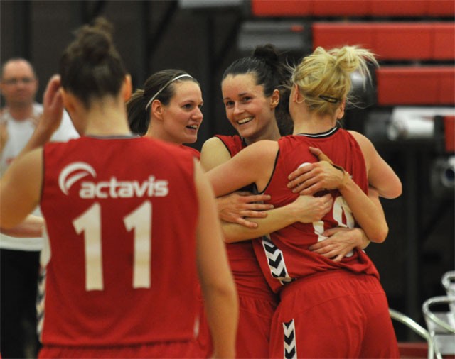 Grindavík hélt í sókn og eftir mislukkað þriggjastigaskot frá Michele DeVault héldu Haukar í hraðaupphlaup og á sama tíma og Telma Fjalarsdóttir lagði knöttinn niður fyrir Hauka var dæmd tæknivilla á Jóhann Ólafsson, þjálfara Grindvíkinga fyrir að sparka stól út í loftið. Telma fór á línuna og kláraði dæmið endanlega fyrir Hauka sem fögnuðu vel og rækilega þegar leikurinn kláraðist og sigur Hauka vís.