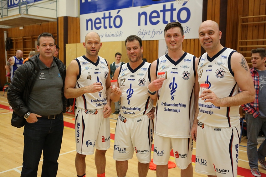 Mynd: Skúli stillti sér upp með köppunum fjórum sem skiluðu þvagi til hans eftir leik.