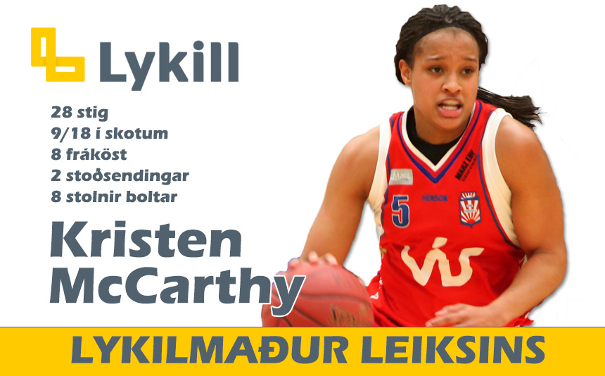 Kristen McCarthy er Lykil-maður þriðja leiks Snæfells og Grindavíkur í undanúrslitum Domino´s-deildar kvenna. Kristen gerði 28 stig í kvöld, tók 8 fráköst og gaf 2 stoðsendingar í 69-48 sigri Hólmara. Snæfell leiðir einvígið 2-1 og dugir einn sigur til viðbótar til að komast í úrslit þar sem Keflvíkingar munu þá bíða þeirra.