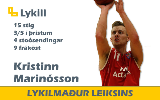 Karfan.is hefur valið Kristinn Marinósson sem Lykil-mann leiksins í fjórðu viðureign Keflavíkur og Stjörnunnar í 8-liða úrslitum Domino´s deildar karla. Þessi ungi og bráðefnilegi leikmaður var með flottar tölur og umfram allt RISASTÓRAN þrist sem kom Haukum þremur stigum yfir þegar 2 mínútur voru eftir af leiknum.