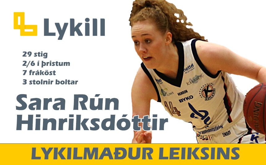 Karfan.is hefur valið Söru Rún Hinriksdóttur, leikmann Keflavíkur sem Lykil-mann annars leiks Hauka og Keflavíkur í undanúrslitum Domino's deildar kvenna. Sara spilaði frábærlega fyrir Keflavík í kvöld, setti 29 stig, tók 7 fráköst og stal 3 boltum. Þar að auki setti hún niður tvo mjög mikilvæga þrista fyrir Keflavík seint í leiknum.