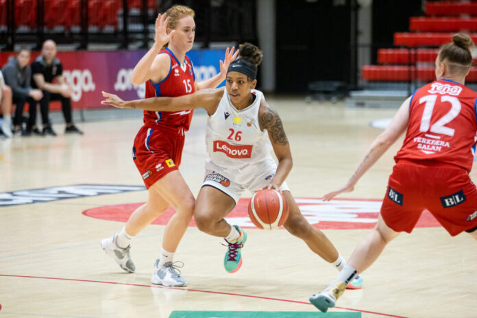 Í nokkuð öruggum sigri Íslandsmeistaranna á nýliðum Grindavíkur var Ameryst besti leikmaður vallarins. Á rúmum 33 mínútum spiluðum skilaði hún 32 stigum, 15 fráköstum, 13 stoðsendingum og 2 stolnum boltum, en í heildina fékk hún 50 framlagsstig fyrir frammistöðuna.