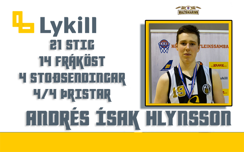 Lykilleikmaður bikarúrslitaleiks í drengjaflokk milli KR og Stjörnunnar var Andrés Ísak Hlynsson. Á aðeins 24 mínútum spiluðum skoraði Andrés 21 stig, tók 14 fráköst og gaf 4 stoðsendingar í góðum sigri hans manna. Ofan á það var hann svo með fullkomna nýtingu fyrir utan þriggja stiga línuna, 4 af 4 skotum hans rötuðu rétta leik.
