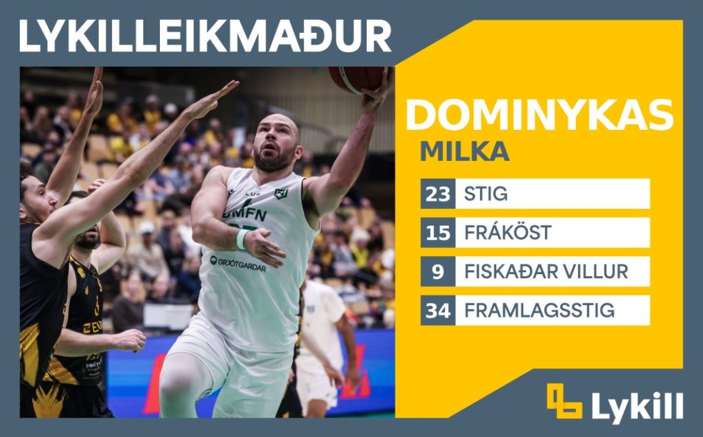 Í gífurlega mikilvægum sigurleik Njarðvíkur gegn nýliðum ÍA í IceMar höllinni var Dominykas besti leikmaður vallarins. Á tæpum 36 mínútum spiluðum skilaði hann 23 stigum, 15 fráköstum, 5 stoðsendingum og 2 stolnum boltum. Þá var hann einnig nokkuð skilvirkur í leiknum með aðeins tvo tapaða bolta, 9 fiskaðar villur, 83% vítanýtingu og 34 framlagsstig fyrir frammistöðuna.