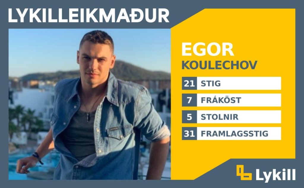 Í nokkuð öruggum sigri Keflavíkur gegn Álftanesi heima í Blue höllinni var Egor besti leikmaður vallarins. Á rúmum 30 mínútum spiluðum skilaði hann 21 stigi, 7 fráköstum, 5 stoðsendingum og 5 stolnum boltum. Þá var hann nokkuð skilvirkur í leiknum, með 5 af 8 fyrir utan þriggja stiga línuna, enga tapaða bolta, þrjár fiskaðar villur og 31 framlagsstig fyrir frammistöðuna.