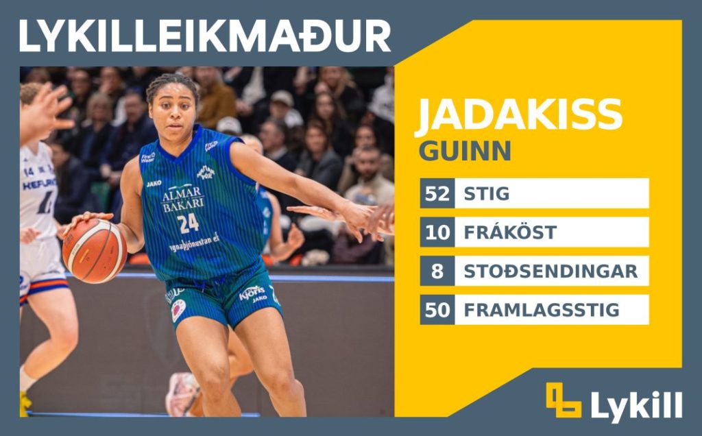 Í gríðarlega mikilvægum sigur Hamars/Þórs gegn Ármann í Hveragerði var Jadakiss besti leikmaður vallarins. Hún lék allar 55 mínúturnar í þessum þríframlengda spennutrylli og skilaði 52 stigum, 10 fráköstum og 8 stoðsendingum. Þá var hún nokkuð skilvirk í leiknum, með 8 fiskaðar villur, 60% heildarskotnýtingu og 50 framlagsstig fyrir frammistöðuna.