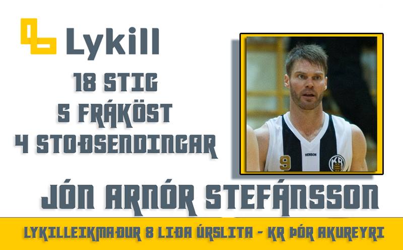 Lykilleikmaður einvígis KR og Þór Ak í átta liða úrslitum Dominos deildar karla var valinn Jón Arnór Stefánsson leikmaður KR. Hann sýndi gríðarlega stöðuga frammistöðu í öllum þremur leikjunum og reyndist liðinu sérlega mikilvægur á stórum augnablikum. Þrátt fyrir að ekki hafi verið mikið um háspennu á lokamínútum leikjanna þá gat Jón með áræðni sinni og gæðum alltaf búið til eitthvað fyrir liðið eða sjálfan sig. Auk þess var varnarvinna Jóns óaðfinnanleg í einvíginu og mun sá eiginleiki hans nýtast liðinu vel í einvíginu gegn Keflavík.