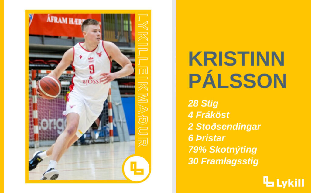 Í nokkuð öruggum sigri Vals gegn Grindavík var Kristinn besti leikmaður vallarins. Á tæpum 35 mínútum spiluðum skilaði hann 28 stigum, 4 fráköstum, 2 stoðsendingum, stolnum bolta og vörðu skoti. Þá var hann nokkuð skilvirkur í leiknum, með 79% skotnýtingu, aðeins einn tapaðan bolta og 30 framlagsstig fyrir frammistöðuna.