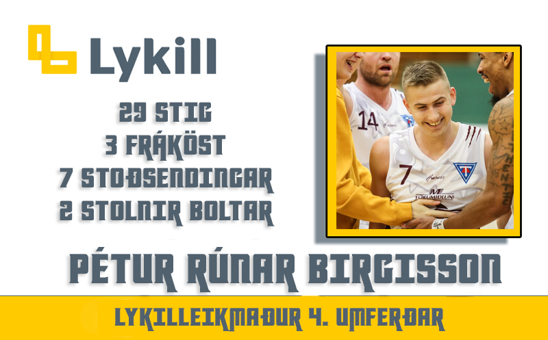 Lykilleikmaður 4. umferðar Dominos deildar karla var leikmaður Tindastóls, Pétur Rúnar Birgisson. Á tæpum 35 mínútum spiluðum í örrugum sigri liðsins á Njarðvík skoraði Pétur 29 stig, tók 3 fráköst, gaf 7 stoðsendingar og stal 2 boltum.
