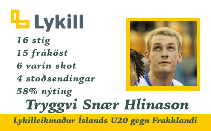 Tryggvi Snær Hlinason átti algjöran skrímslaleik gegn sterku liði Frakklands. Hann endaði með 16 stig, 16 fráköst, 4 stoðsendingar, 6 varin skot og 32 framlagsstig. Hann reyndist Frakklandi ofboðslega erfiður á báðum endum vallarins og sýndi enn og aftur framfarir í sínum leik. Hann er því lykilmaður fyrsta leiks U20 landsliðsins á Krít.