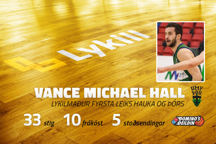 Lykilmaður fyrsta leiks Hauka og Þórs Þorlákshafnar í 8 liða úrslitum Domino's deildar karla er að mati Karfan.is Vance Michael Hall í liði Þórs. Vance skoraði 33 stig, tók 10 fráköst og gaf 5 stoðsendingar í afar mikilvægum sigri Þórs sem færði þeim heimavallar réttinn í viðreign liðanna.
