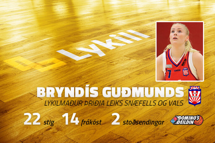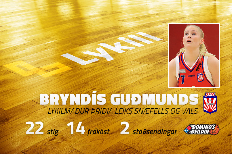 Karfan.is hefur útnefnt Bryndísi Guðmundsdóttur Lykilmann þriðja leiks Snæfells og Vals í undanúrslitum Domino's deildar kvenna. Bryndís var klettur í vörninni og þegar Snæfell þurfti körfur undir körfunni var best leita til hennar. Hún spilaði sinn lang besta leik í langan tíma í gærkvöldi.