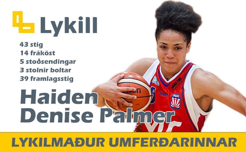 Haiden Denise Palmer átti frábæran leik með Snæfelli gegn taplausu liði Hauka í Domino's deild kvenna. Palmer endaði með 43 stig, 14 fráköst og 5 stoðsendingar. Þar að auki stal hún 3 boltum og lauk leik með 39 framlagsstig. Hún leiddi lið Snæfells í sigri á Haukum sem fengu þar af leiðandi sitt fyrsta tap á tímabilinu. Haiden Denise Palmer er lykilmaður 10. umferðar Domino's deildar kvenna.