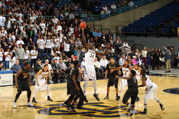 Þessi gutti er 21 árs, 229 cm á hæð frá Senegal og spilar bolta fyrir UC Irving. Hann hefur ekki mikið fyrir þessari troðslu.