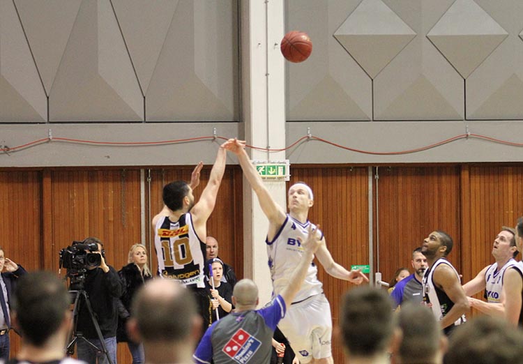 Mynd/ [email protected] – Marvin til varnar, Helgi Magnússon lætur hér vaða en þetta reyndist síðasta skot leiksins og hefði það farið niður tja…
