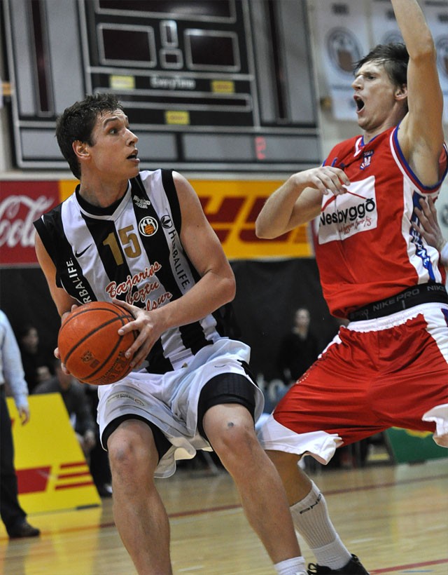 Ljósmynd/ Tomasz Kolodziejski: Pavel Ermolinskij sækir að en Martins Berkis er til varnar.
