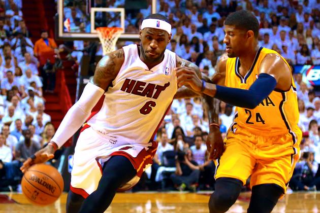 Roy Hibbert átti ágætisleik en Paul George skoraði meira þrátt fyrir að hafa hitt ákaflega illa. Hjá Miami voru það félagarnir LeBron og Wade sem skoruðu saman 49 stig.