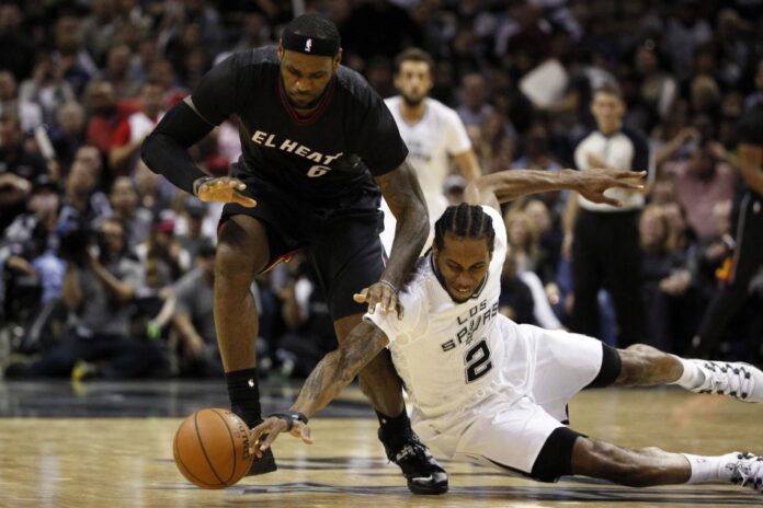 Stórkostleg skotsýning Spurs manna og engin svör frá Heat. Chris Bosh (10/16) var eini leikmaður Heat sem eitthvað hitti í leiknum en LeBron setti upp 6/18 línu og þar af 0/3 í þriggja. Kawhi Leonard hékk á honum eins og blautur frakki og þvingaði fjóra af fimm töpuðum boltum LeBron í leiknum. LeBron kenndi fótboltabúningum Adidas um hversu illa honum gekk að skjóta boltanum en það var ekki að sjá hjá Boris Diaw (5/5 og 2/2 fyrir utan) og Tim Duncan (9/13).