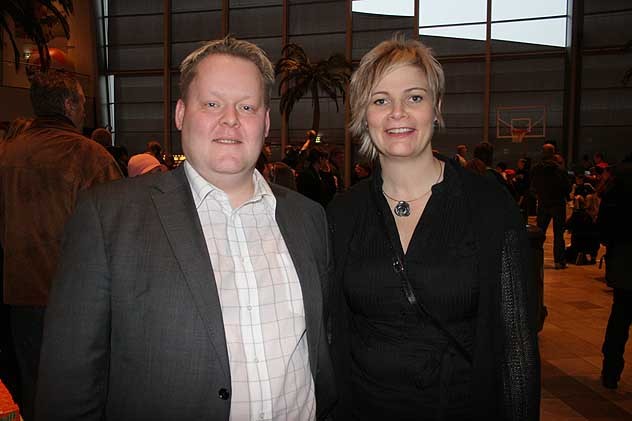 Mynd/ Formaðurinn Hannes S. Jónsson og varaformaðurinn Guðbjörg Norðfjörð skemmtu sér vel í Smáralind á afmælisdaginn.