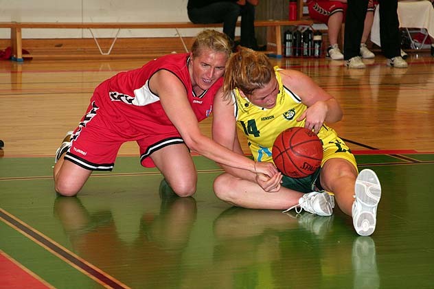 Ljósmynd/ Helena Ingimarsdóttir leikmaður Skallagríms og Lovísa Guðmundsdóttir leikmaður Vals berjast um boltann í teignum.