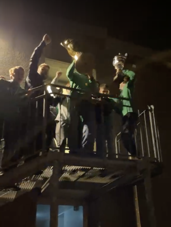 Hér fyrir neðan má svo sjá myndband frá því þegar að liðið fór með bikarinn heim í Njarðtaksgryfjuna, þar sem að meðal annars lögreglan fylgdi þeim síðustu kílómetrana og góður hópur fólks tók á móti þeim við íþróttahúsið.