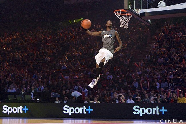 Í þessu myndbroti er Darlington að troða yfir félaga sinn sem kippir sér lítið upp yfir því að Justin svífi yfir hausamótunum á honum.