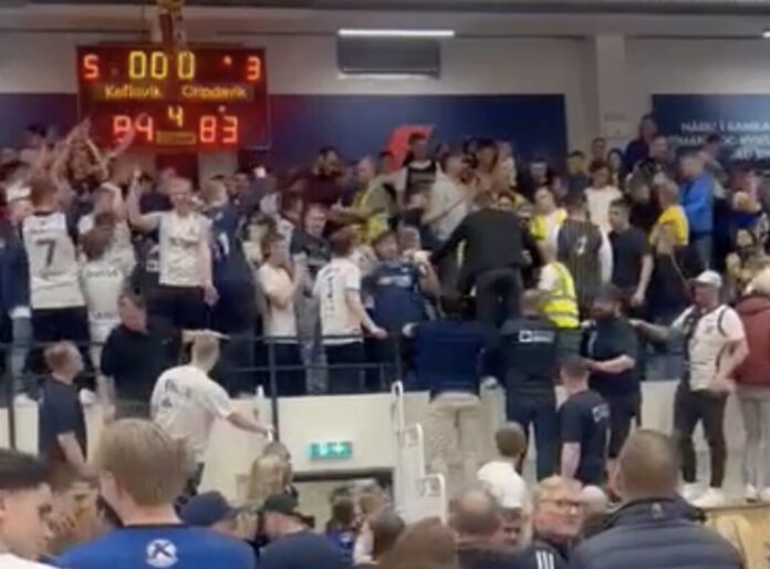 Eðlilega voru leikmenn og stuðningsmenn Grindavíkur ósáttir með niðurstöðu leiksins, en Keflvíkingar fögnuðu ákaft er lið þeirra hélt af velli stuttu eftir að sigurþristur Urban datt niður. Einhverjir tóku því sérlega illa og eins og má sjá hér fyrir neðan varð uppi fótur og fit er stuðningsmannasveitir liðanna tókust á eftir leik. Samkvæmt heimildum Körfunnar gengu forsvarsmenn liðanna á milli hópanna tveggja er allt var að sjóða uppúr, svo lítið varð úr eiginlegum slagsmálum.