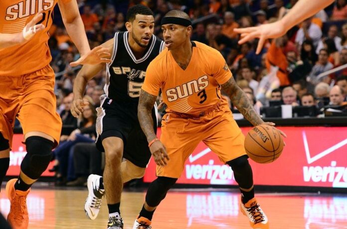NBA meistararnir San Antonio Spurs steinlágu í Phoenix gegn einu af mest spennandi liðum deildarinnar í dag. Það var lok lok og læs í vörn Suns í öðrum hluta og óeigingirnin allsráðandi hjá heimamönnum. Alls skoruðu sex leikmenn meira en 10 stig hjá Suns en Isaiah Thomas var stigahæstur með 23 stig.