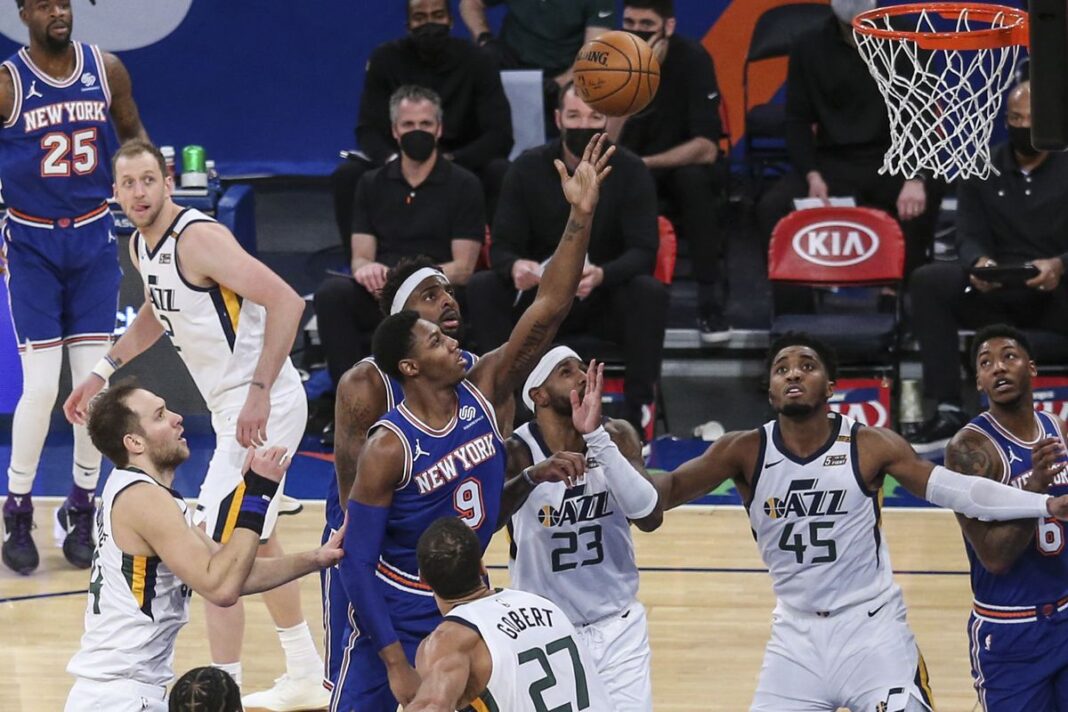 Í New York lögðu heimamenn í Knicks lið Utah Jazz, 100-112. Knicks komið nokkuð á óvart í byrjun tímabils. Með 5-3 árangur sitja þeir í 5. sæti Austurstrandarinnar með 63% sigurhlutfall. Atkvæðamestur fyrir þá í leik næturinnar var Julius Randle með 30 stig, 16 fráköst og 7 stoðsendingar. Fyrir Jazz var það Rudy Gobert sem dróg vagninn með 14 stigum, 12 fráköstum og 5 vörðum skotum.