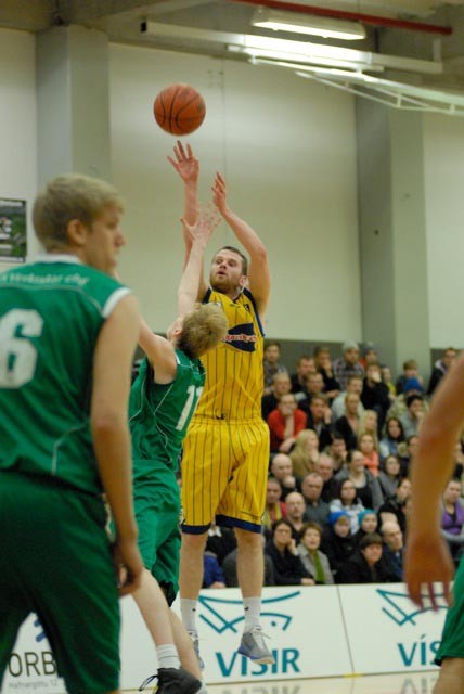 – 7.02mín í hálfleik: 26-30 fyrir UMFG – Þorleifur Ólafsson að klína ofaní þrist, sjpaldið ofaní, hann kallaði það ekki!
