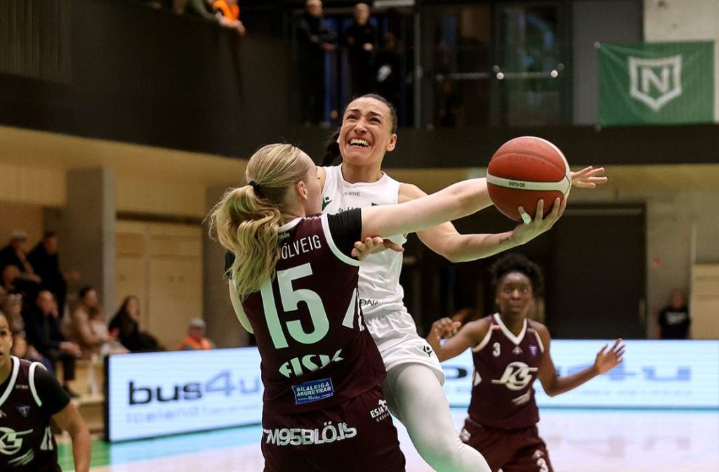 Njarðvík tók í kvöld 1-0 forystu gegn Tindastól í 8-liða úrslitum Bónusdeildar kvenna. Lokatölur 103-97 í hörku leik þar sem Njarðvíkingar voru þó alltaf við stýrið. Brittany Dinkins var stigahæst í liði Njarðvíkinga með 35 stig, 5 fráköst og 7 stoðsendingar og Danielle Rodriguez var afar nærri þrennunni með 24 stig, 11 fráköst og 9 stoðsendingar. Hjá Tindastól var Madison Anne Sutton með 35 stig, 8 fráköst og 2 stoðsendingar.