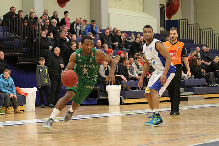 Landsliðsmaðurinn Logi Gunnarsson var þó ekki á því að gefa neitt eftir og fleygði upp þrist úr vinstra horninu strax í næstu sókn. Sá fór niður eins og venjan er hjá leikmanni eins og Loga þegar leikurinn er undir.
