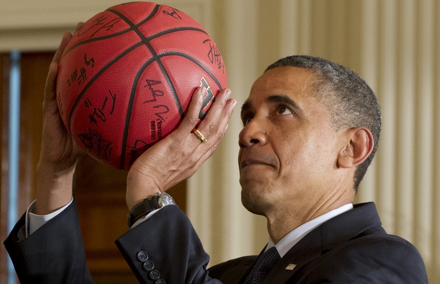 Körfuknattleiksáhugamaðurinn örvhenti í Hvítahúsinu hefur mikinn áhuga á NCAA boltanum. Síðustu sex árin hefur hann spáð í leikina í 64 liða úrslitum NCAA og spáin hans hefur verið sýnd á íþróttastöðinni ESPN.