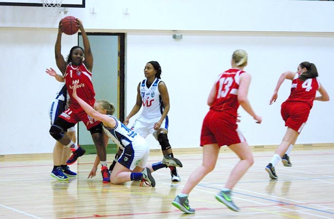 Heimakonur byrjuðu nokkuð betur í leiknum og komust í 8-0 og 13-4 en þá var komið nóg af mistökum Haukameginn og þær rauðklæddu jöfnuðu leikinn jafnharðan 13-13 og greinilegt að þær áttu nokkuð inni miðað við fyrstu mínúturnar. Sydnei Moss setti síðustu stigin í leikhlutanum og Hamarskonur unnu fyrsta leikhlutann því 15-13.