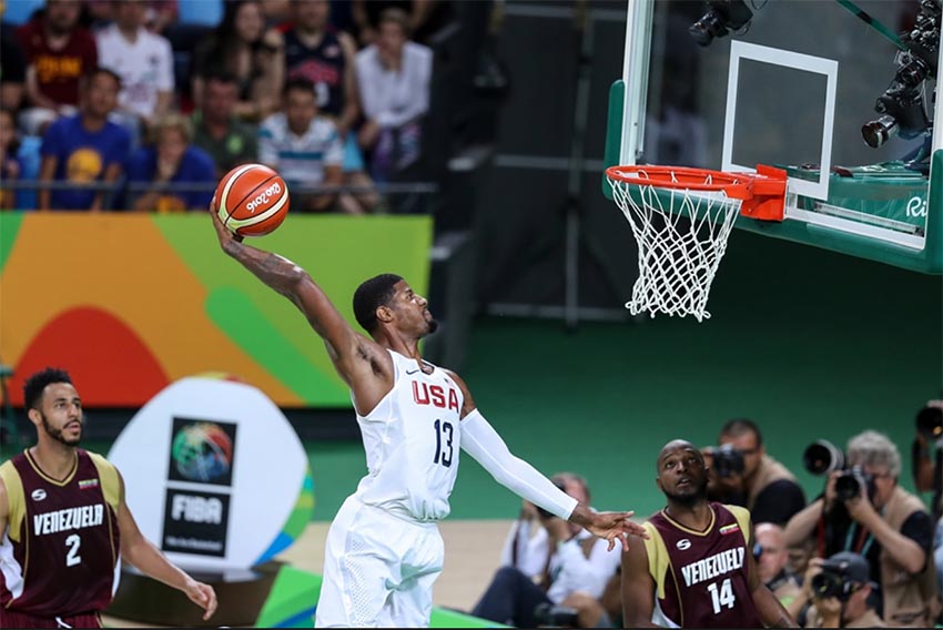 Mynd/ Fiba.com-Paul George smellir niður 2 af 20 stigum sínum gegn Venesúela í gær.