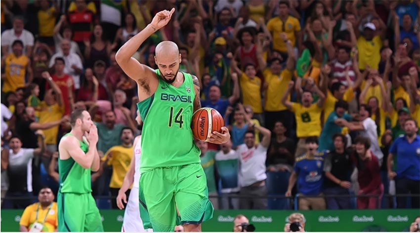 Marquinhos var hetja Brasilíumanna þegar 5 sekúndur lifðu leiks þegar hann blakaði boltanum í körfuna eftir teigskot frá félaga sínum Marcelo Huertas: