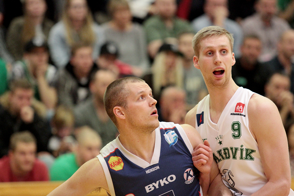 Leikmennirnir og bræðurnir, Guðmundur & Ólafur Helgi Jónssynir, eftir sigur Keflavíkur á Njarðvík fyrr í kvöld.
