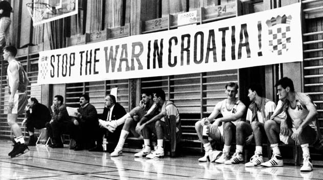 Vel að merkja í myndinni Once brothers segir Vlade Divac þegar myndin úr Ljónagryfjunni birtist: With the war in Jugoslavia basketball was no longer important!
