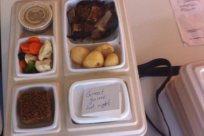 Mynd/ Af Facebook-síðu Hairston – Orðsendingin góða sem Hairston fékk með matnum sínum.