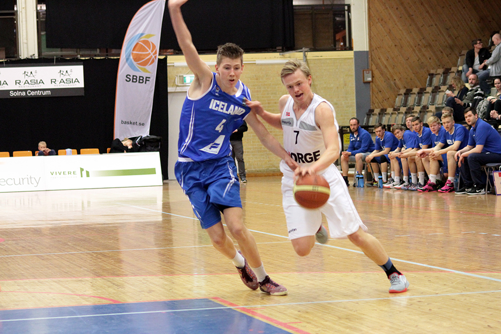 Norðmenn komust í 10-7 en lengra náðu þeir ekki. Skellt var hreinlega í lás hjá íslenska liðinu, pressa sett á allan völlinn og keyrt á körfuna miskunnarlaust.