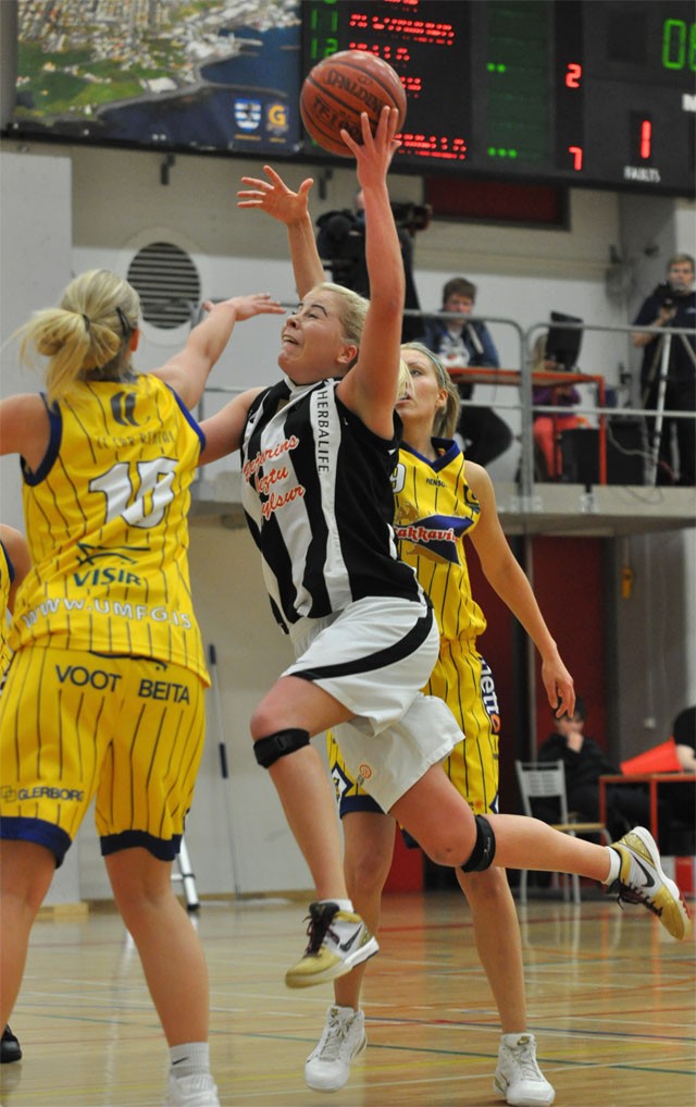 Leiknum lauk því með öruggum sigri KR, 45-66, þar sem Signý Hermannsdóttir, 17 stig og 8 fráköst, og Margrét Kara Sturludóttir, 16 stig og 12 fráköst, voru atkvæðamestar.
