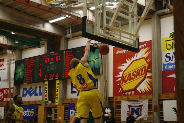 Elvar var orðinn funheitur á þessum tímapunkti og splæsti í eina fallega þriggjastiga í viðbót. Cameron Echols jafnaði loks leikinn í fyrsta sinn í leiknum, eða frá því að staðan var 0-0. Þá voru 8 mínútur eftir á leikklukkunni og komin fín stemning í Ljónagryfjuna. Travis Holmes bauð svo upp á glæsilegan varnarleik þegar hann varði glæsilega sniðskot frá Fjölnismönnum og stuttu síðar fiskaði hann sóknarvillu. Staðan var lengi vel jöfn og virtist allt stefna í spennandi lokamínútur. Vagg og velta var að virka vel í sókninni hjá Njarðvíkingum og Cameron Echols fékk nokkrar auðveldar körfur.