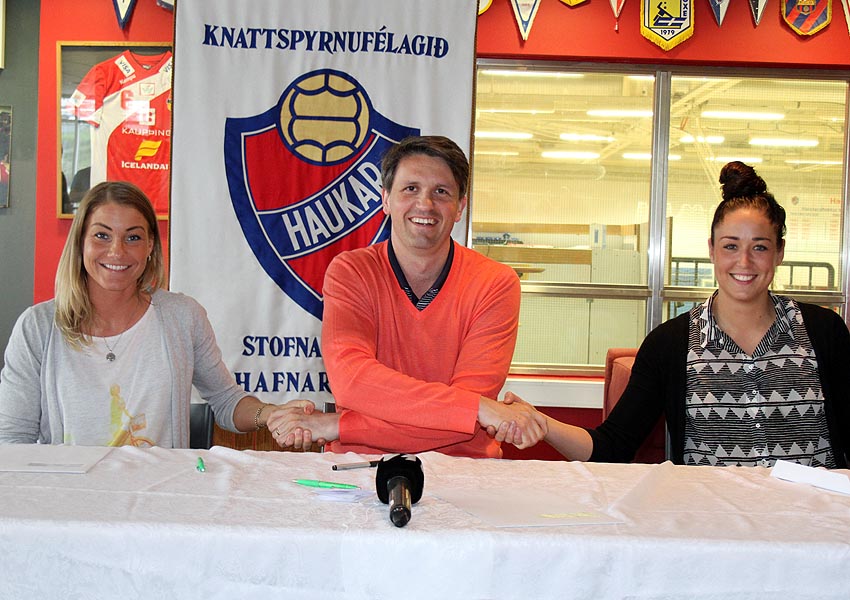 Þá eru vinkonurnar sameinaðar að nýju því Pálína María Gunnlaugsdóttir skrifaði í kvöld undir tveggja ára samning við Hauka. Pálína og Helena Sverrisdóttir ætluðu sér alltaf að leika saman aftur í úrvalsdeild kvenna en leiðir skildu þegar Helena hélt til náms í Bandaríkjunum. Nú eru þessir tveir fremstu kvennakörfuknattleiksmenn þjóðarinnar að snúa saman bökum í Schenkerhöllinni og eflaust margir sem búast við látum í Hafnarfjarðarliðinu á komandi tímabili.
