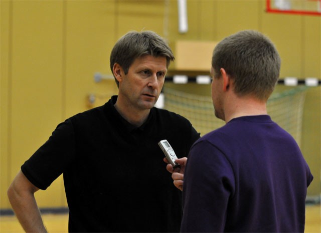 Ljósmynd/ Tomasz Kolodziejski: Páll í viðtali við Karfan.is eftir viðureign ÍR og KR í Kennó í gær.