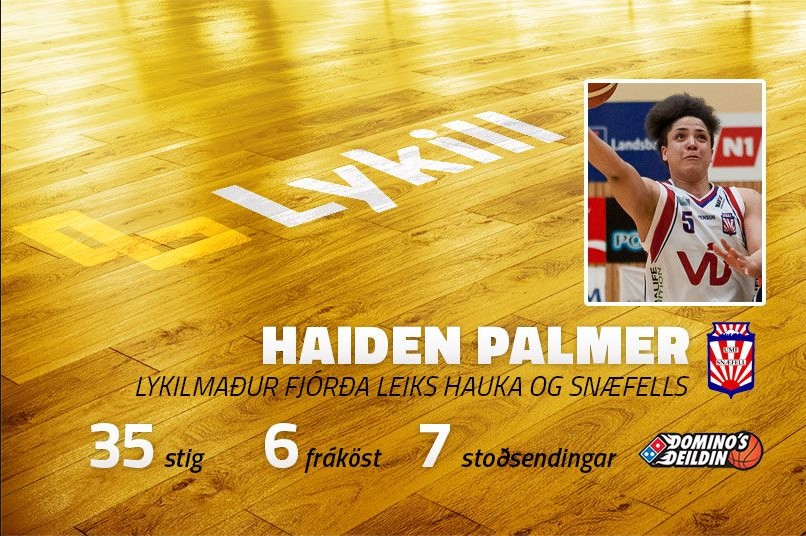 Það ætti svo sem að koma fáum á óvart að Haiden Palmer er Lykilmaður leiksins í kvöld þegar hún fór langt með það á eigin spítur að tryggja liði Snæfell farseðil í úrslitaleik um Íslandsmeistaratitilinn í Dominosdeild kvenna á þriðjudaginn nk.  Palmer fór hamförum þegar hún skoraði 35 stig og sendi 7 stoðsendingar ásamt því að taka 6 fráköst.