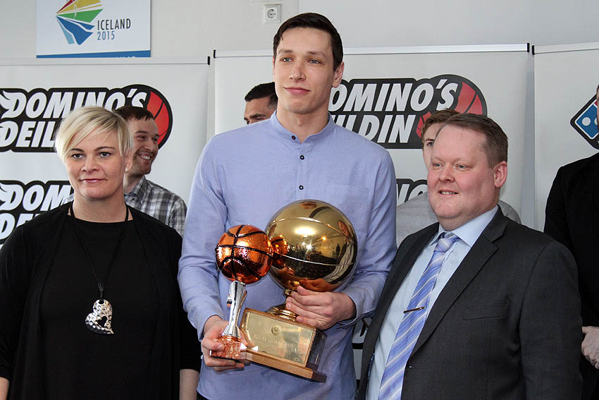 Mynd/ [email protected] – Pavel fyrir miðju ásamt Guðbjörgu Norðfjörð varaformanni KKÍ t.v. og Hannesi S. Jónssyni formanni KKÍ t.h.