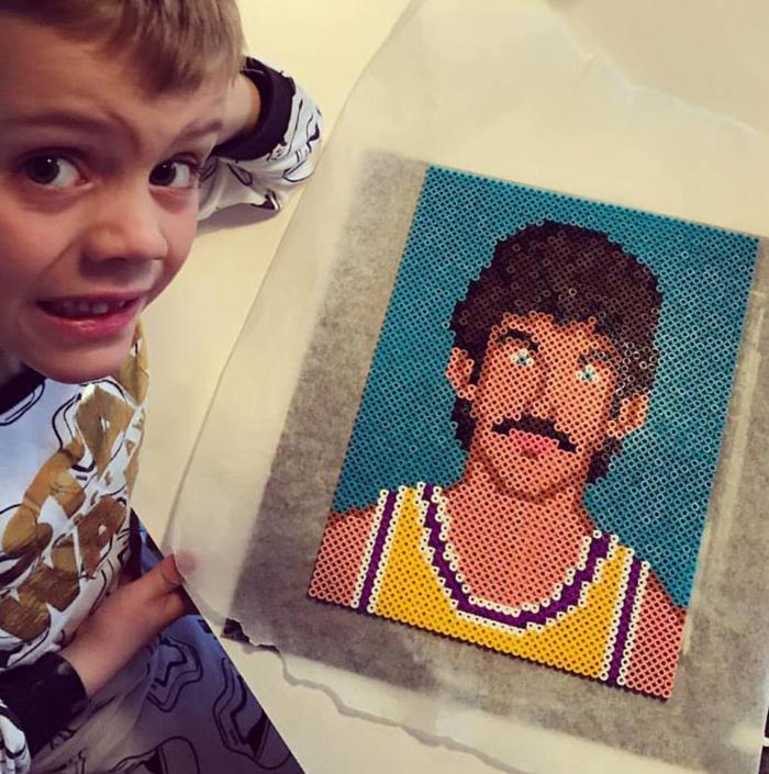 Jón, sem er grafískur hönnuður að mennt, ætlaði fyrst að gera Patrick Ewing þar sem hann er Knicksari til fjölda ára en þeir ákváðu svo í sameiningu að perla Pétur Legend. "Bara taka perlurnar aðeins lengra," sagði Jón í spjalli við Karfan.is í dag. "Búið að perla nóg af jólahjörtum og skósveinum."