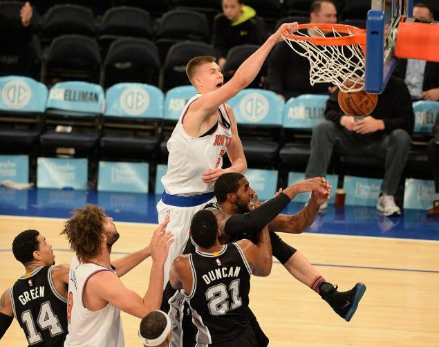 Kristapas Porzingis átti mögnuð tilþrif í nótt þegar New York Knicks unnu Milwaukee 100-88. Porzingis átti þá eina huggulega „putback“ troðslu en kappinn var með 15 stigog 6 fráköst í liði Knicks.
